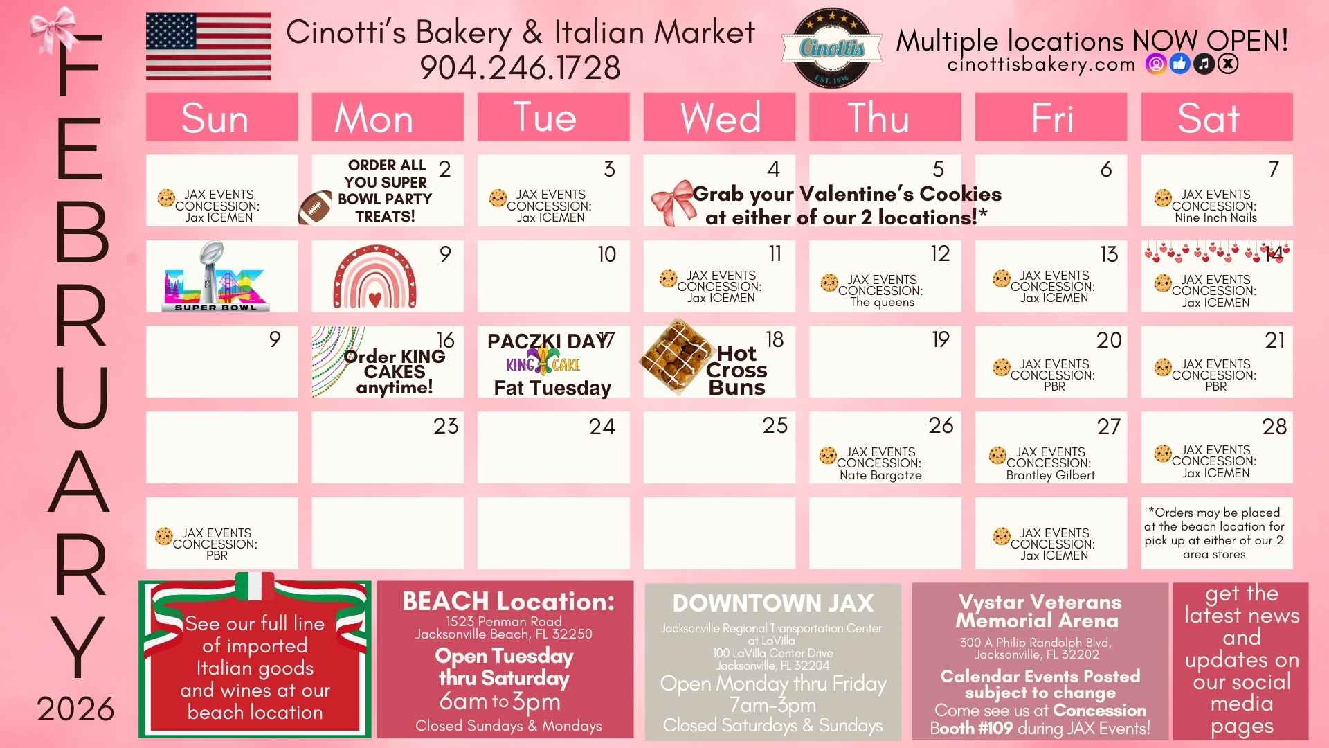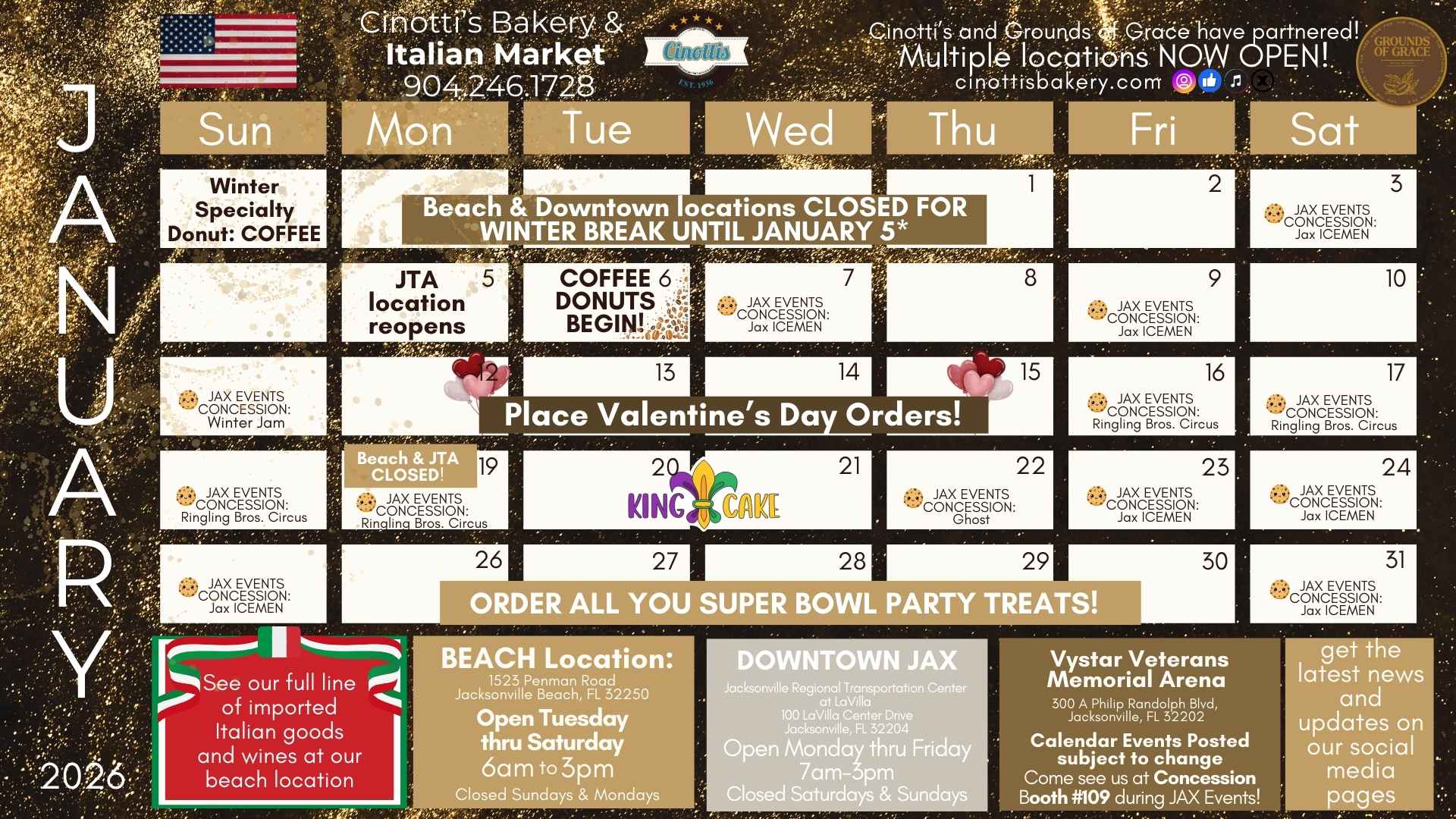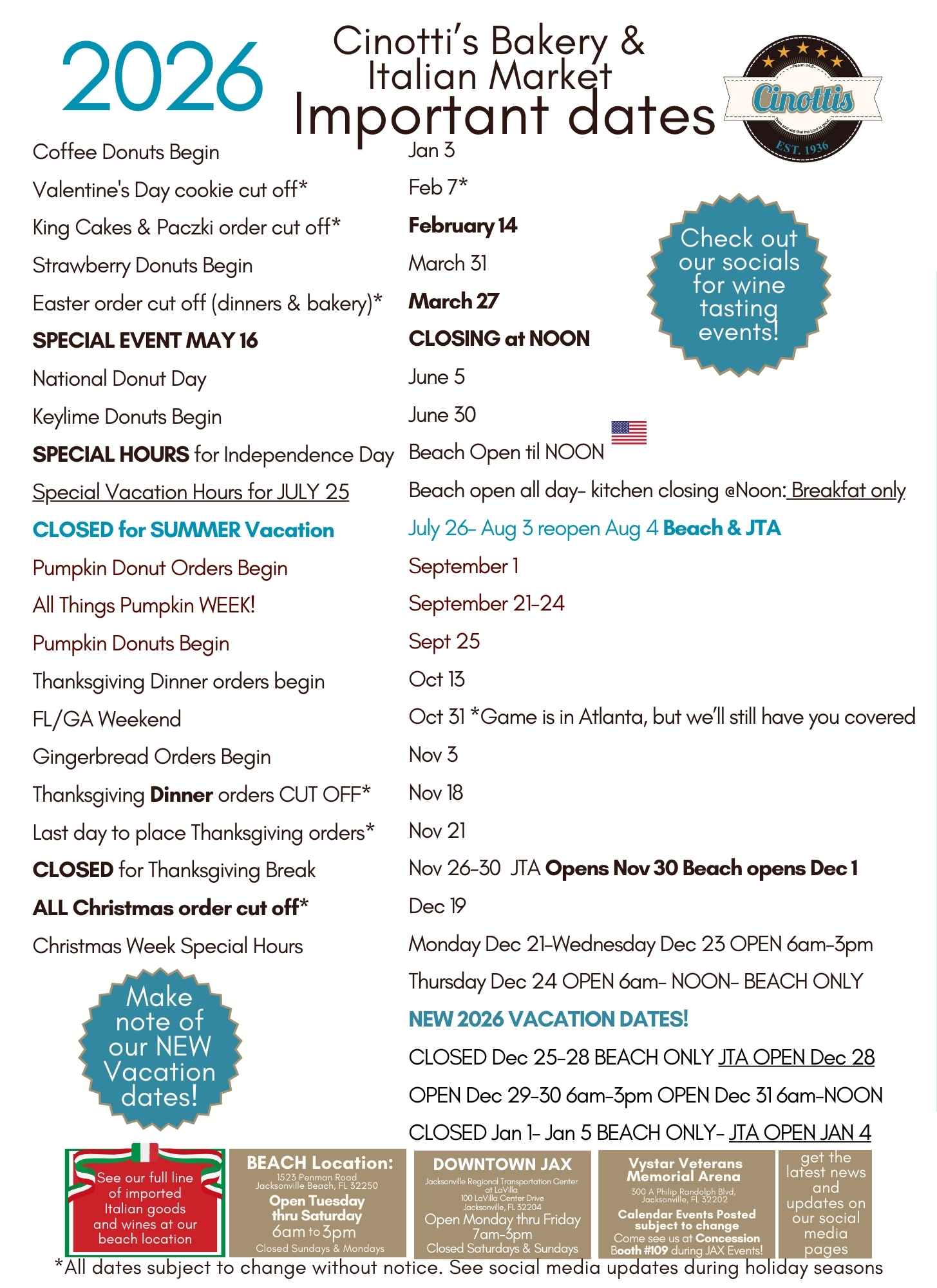 Custom cookie orders require minimum 5 business day notice. All other orders require a 48-hour minimum notice. This is subject to change during peak holiday times. Wine Gift Cards Order Online Italian Market King Cakes Valentine's Day DONUTS PASTRIES CUPCAKES HOLIDAY CAKES BREADS ONLINE ORDERS Italian Market COOKIES DANISH PIES KITCHEN MENU [/et_pb_column]
