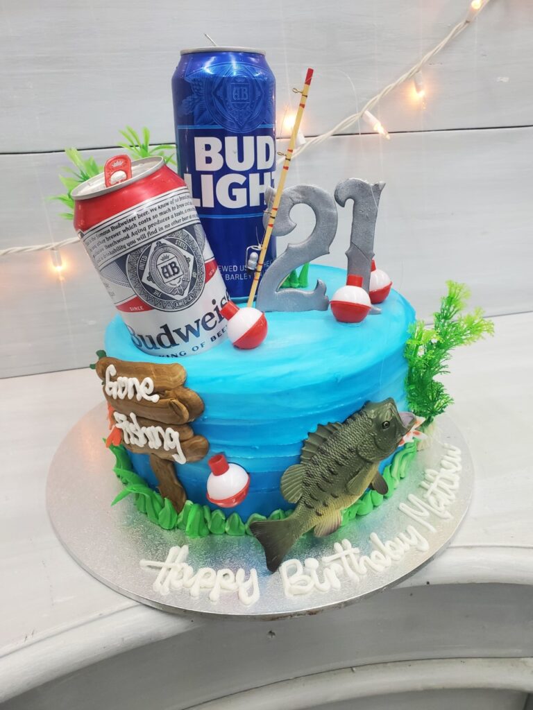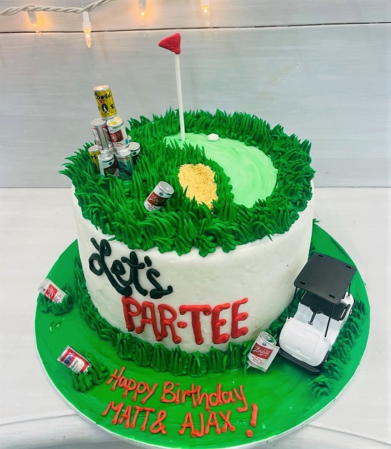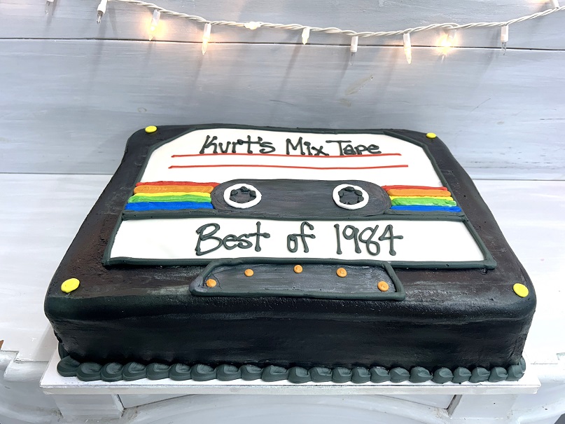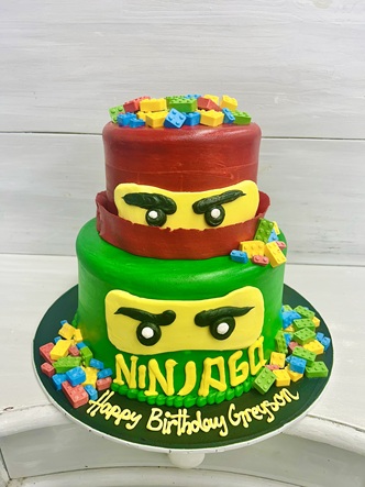 This buttercream iced cake is made to look like smooth fondant and features piped decorations. The volcano is made of cake and icing while the number and dinosaur topper are hand-cut fondant pieces.Ā