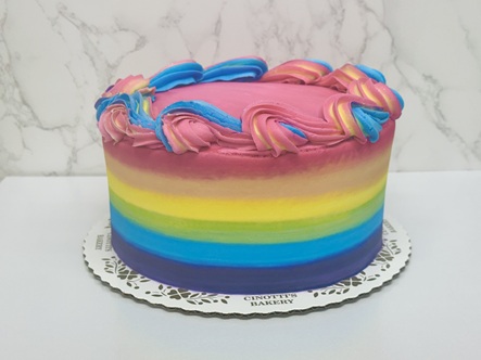 Rainbow buttercream and a puffy border make this cake the perfect addition to any fun-loving party. Add custom text or topper and get the party started.