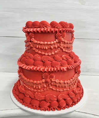 Smooth buttercream with swags and ruffles create a cake that is sure to please. This cake can be customized in any color, and a custom topper can be added for an elegant, finished cake.